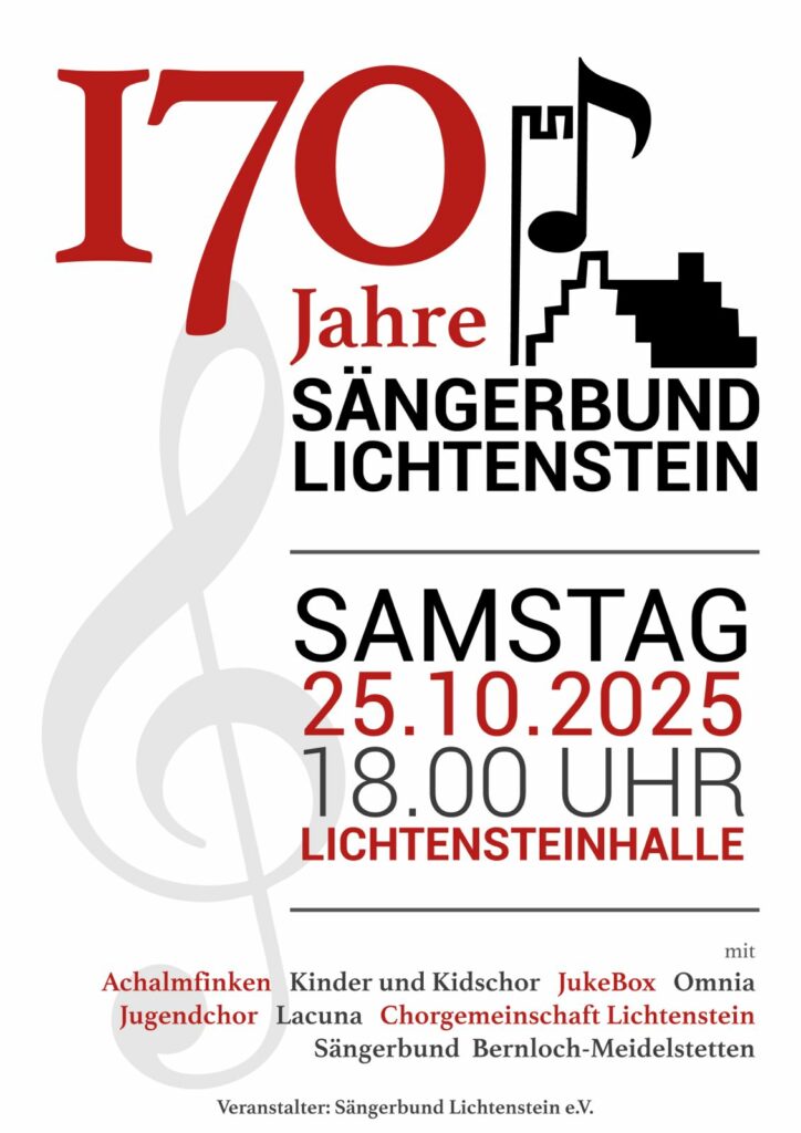 Am Samstag, 25.10.2025 feiern 170 Jahre Sängerbund Lichtenstein. Wie könnte es anders sein? Mit ganz viel Musik von allen Chören.